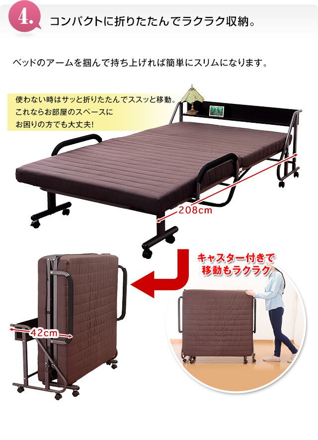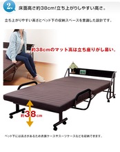 木製棚付き 収納式 リクライニングベット(手動タイプ・電動タイプ) コンパクト収納 ラクラク移動 NS