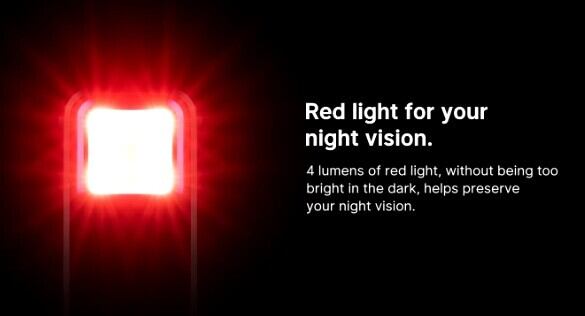 ・デュアル光源: 白色光と赤色光の2つの光源を搭載。白色光は作業灯として、赤色光は夜間の視界を妨げない安全灯として使用できます。
