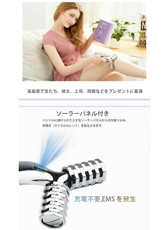 EMS美顔ローラ フェイス 小顔 美容 充電不要 ソーラパネル付きマイクロカレント 360度マルチアングル構造小顔 美顔器 全身ケア ギフト NS