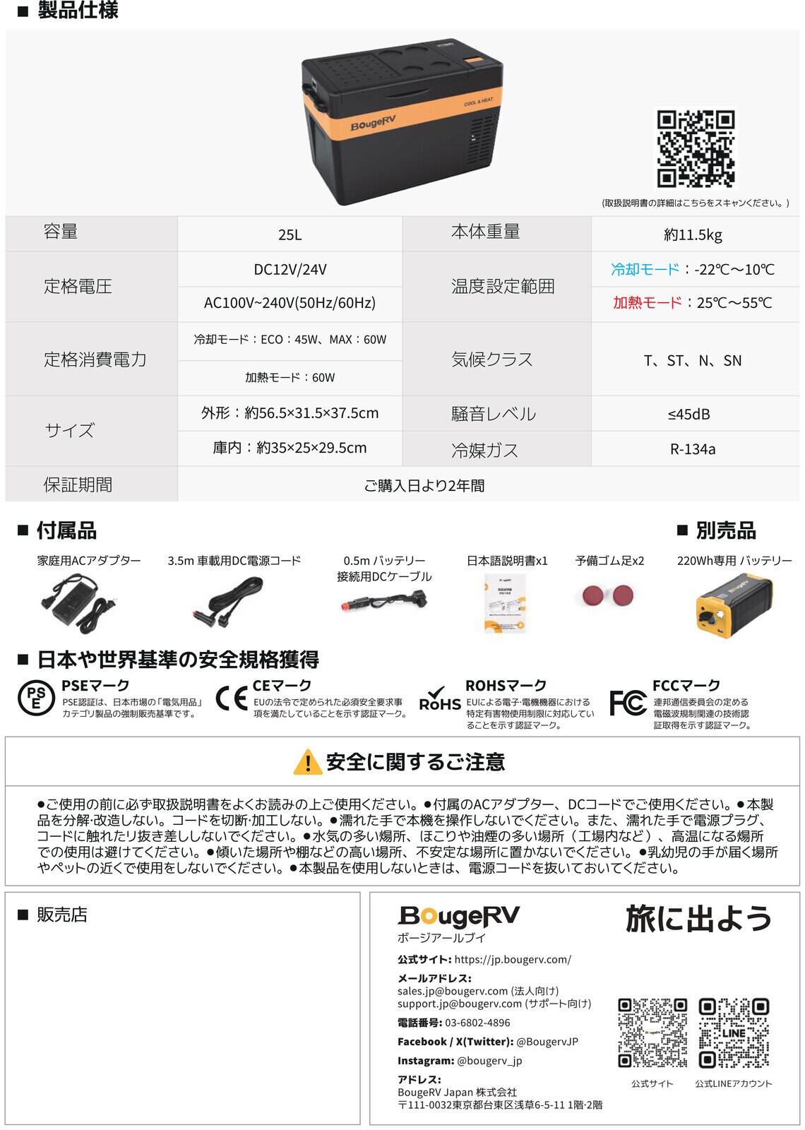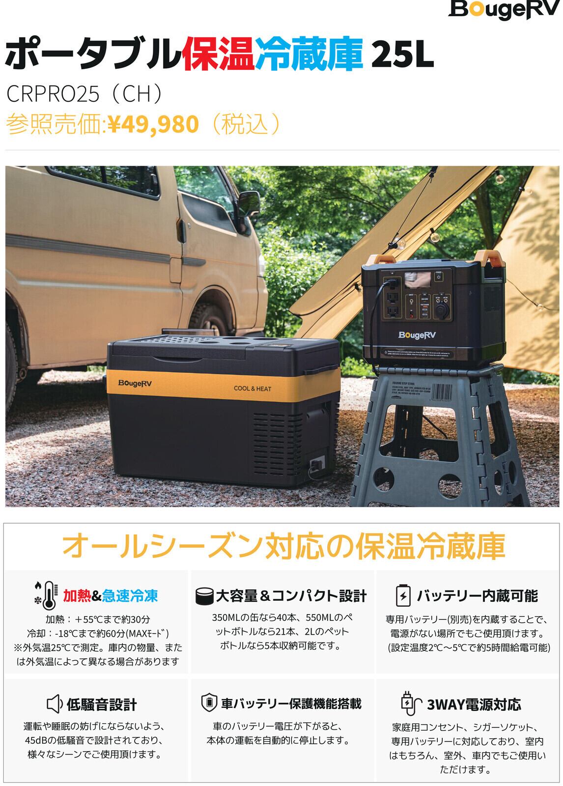 BougeRV ポータブル保温冷蔵庫 25L CRPRO25(CH) 保冷保温 コンパクト 低騒音 3WAY電源 PSE認証 野外活動 釣り キャンプ 防災 停電 SD