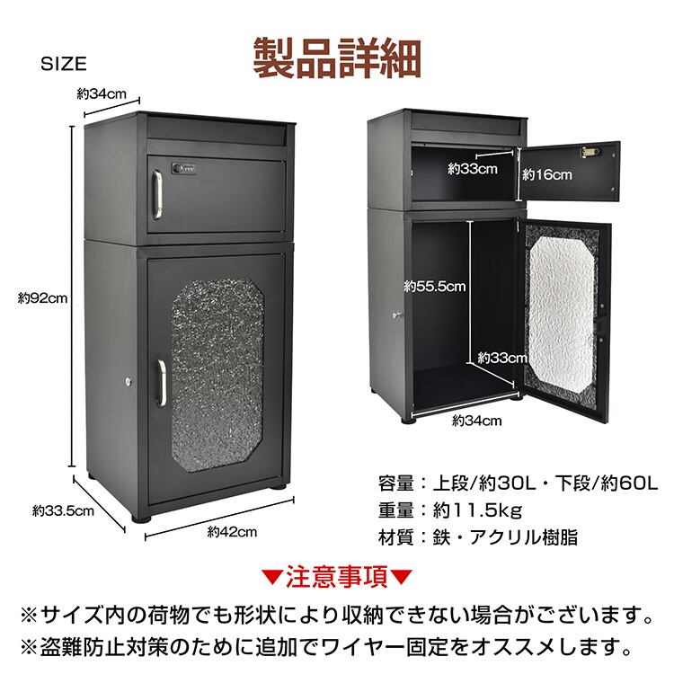 宅配メールボックス 大容量 90L スタンド型 ワンタッチロック 簡単設置 郵便 一戸建て用 NS