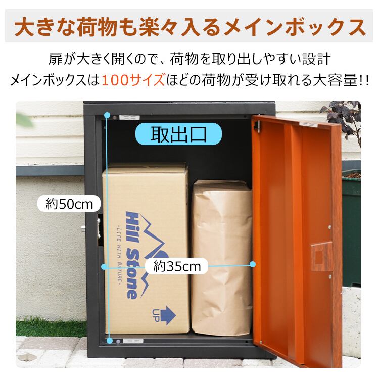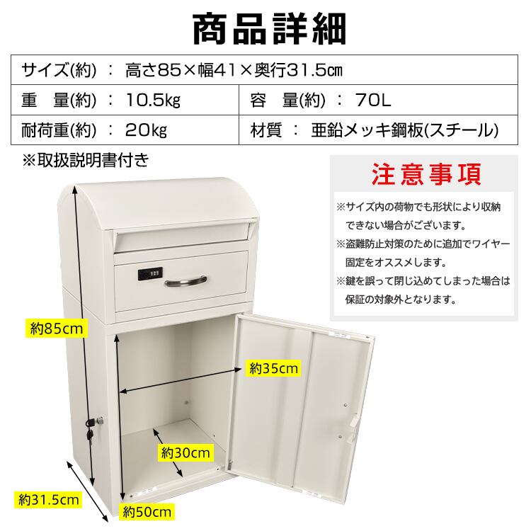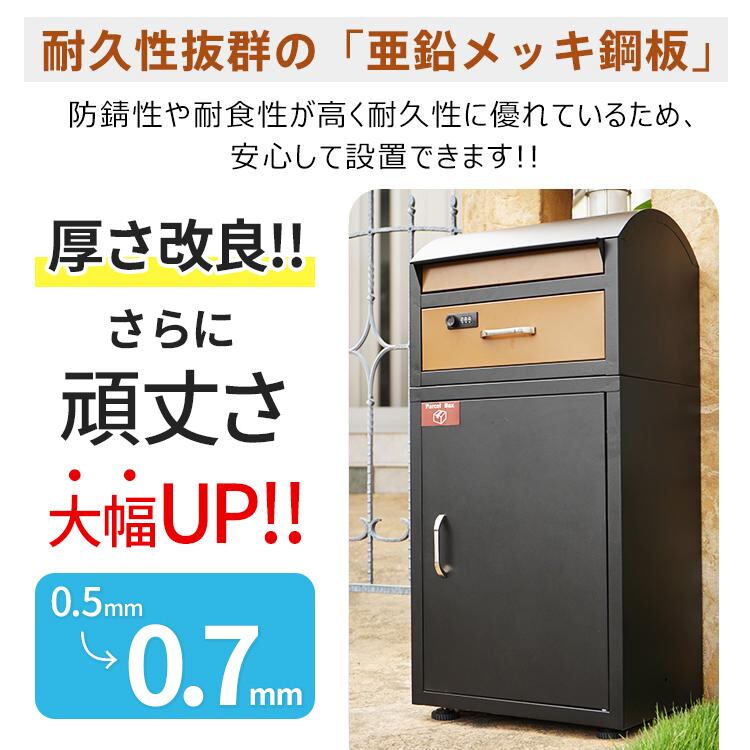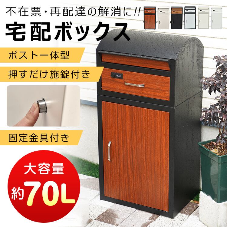 宅配ボックス ポスト一体型 70L スタンド型 亜鉛メッキ製 ワンタッチロック 印鑑ホルダー 簡単設置 NS
