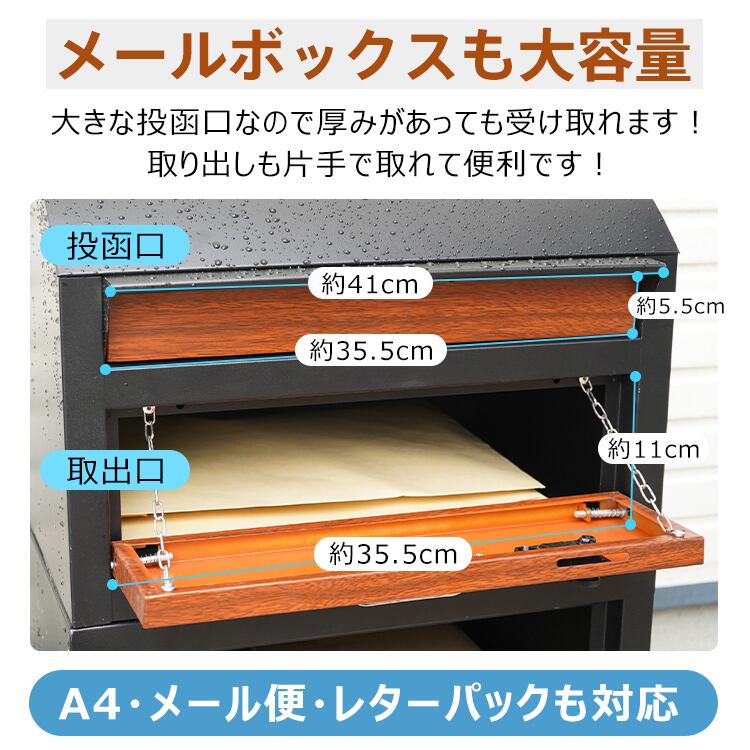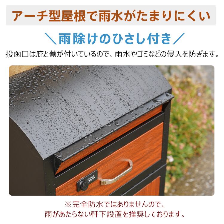 投函口は庇と蓋が付いているので、雨水やゴミなどの侵入を防ぎます!