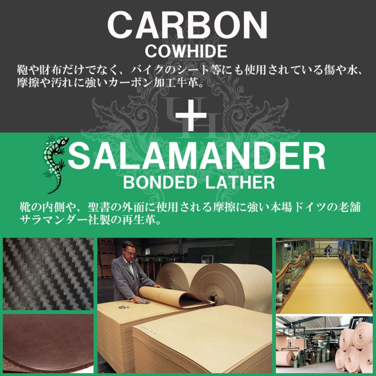 ◇素材:カーボンフィルムレザー(牛革)、 サラマンダー社製ボンデッドレザー、YKK製ファスナー