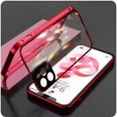 iPhone 金属製磁気ケース 両面強化ガラス 360° 保護 レンズプロテクション スライドロック 磁気吸着 アンチピープ ギフト AEX