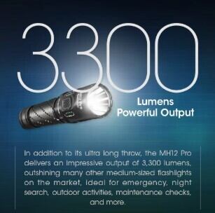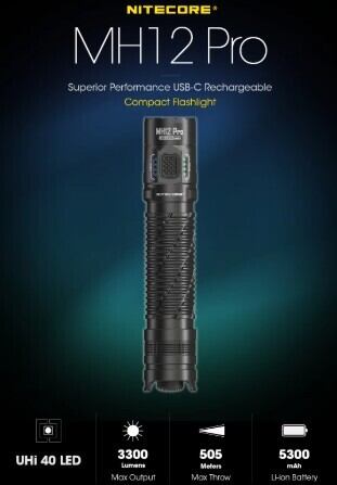 NITECORE MH12 Proは、NiteLab UHi 40 LEDを搭載した、最大3300ルーメンの超高輝度フラッシュライトです。505メートルの照射距離と、最大650時間のランタイムを実現し、幅広いシーンで活躍します。