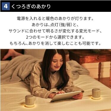 独立した左右2つのスピーカーを採用することで、立体感のあるサウンドを実現。防水で持ち運べるから、アウトドアにもおすすめ。やさしい暖色の明かりが音に合わせてきらめきます。スピーカー底面部にはマグネットを搭載。