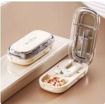 ピルカッター&ボックスセット 正確な位置合わせ 薬箱 ポータブル 錠剤カッター お手入れ簡単 安全コンパクト 耐久 AEX