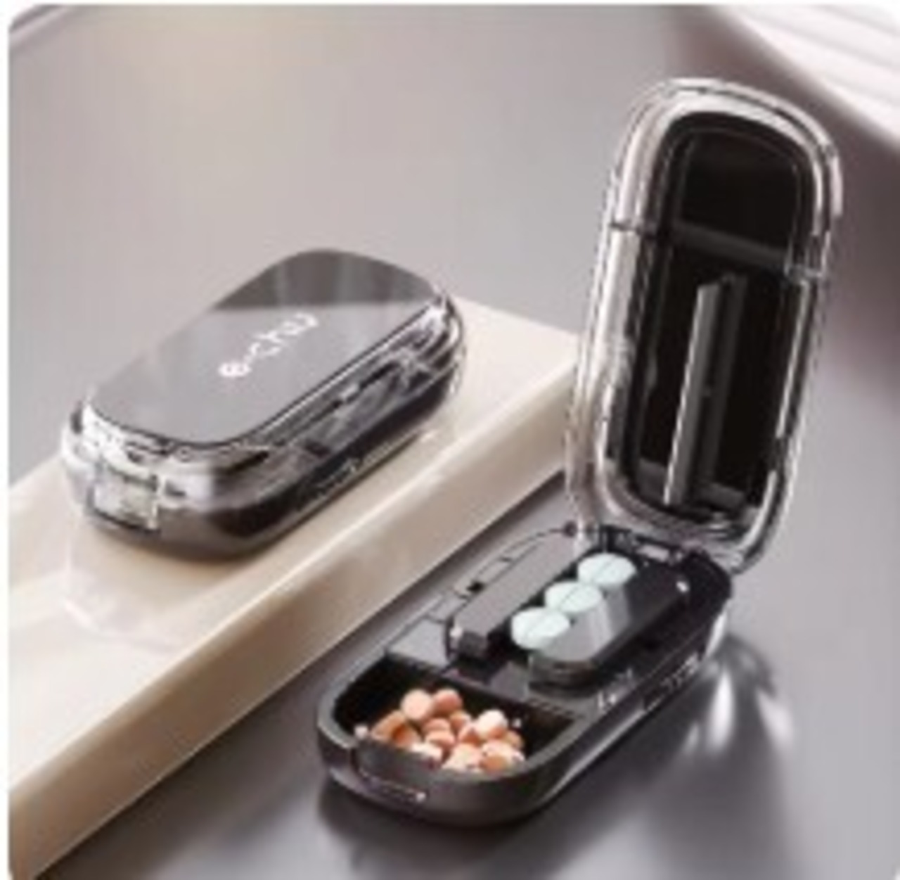 複数の錠剤を一度に分割できる調整可能なディスペンサー。さまざまなサイズや形の錠剤に対応し、時間と手間を省きます。